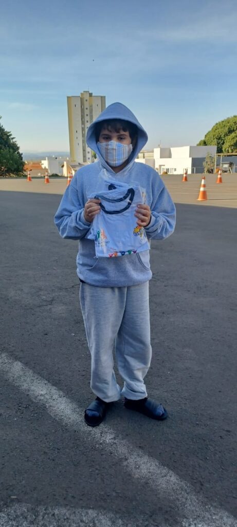 Enquanto acontecia a entrega das camisetas a gravação e edição das aulas virtuais, bem como as reuniões pedagógicas foram realizadas normalmente.